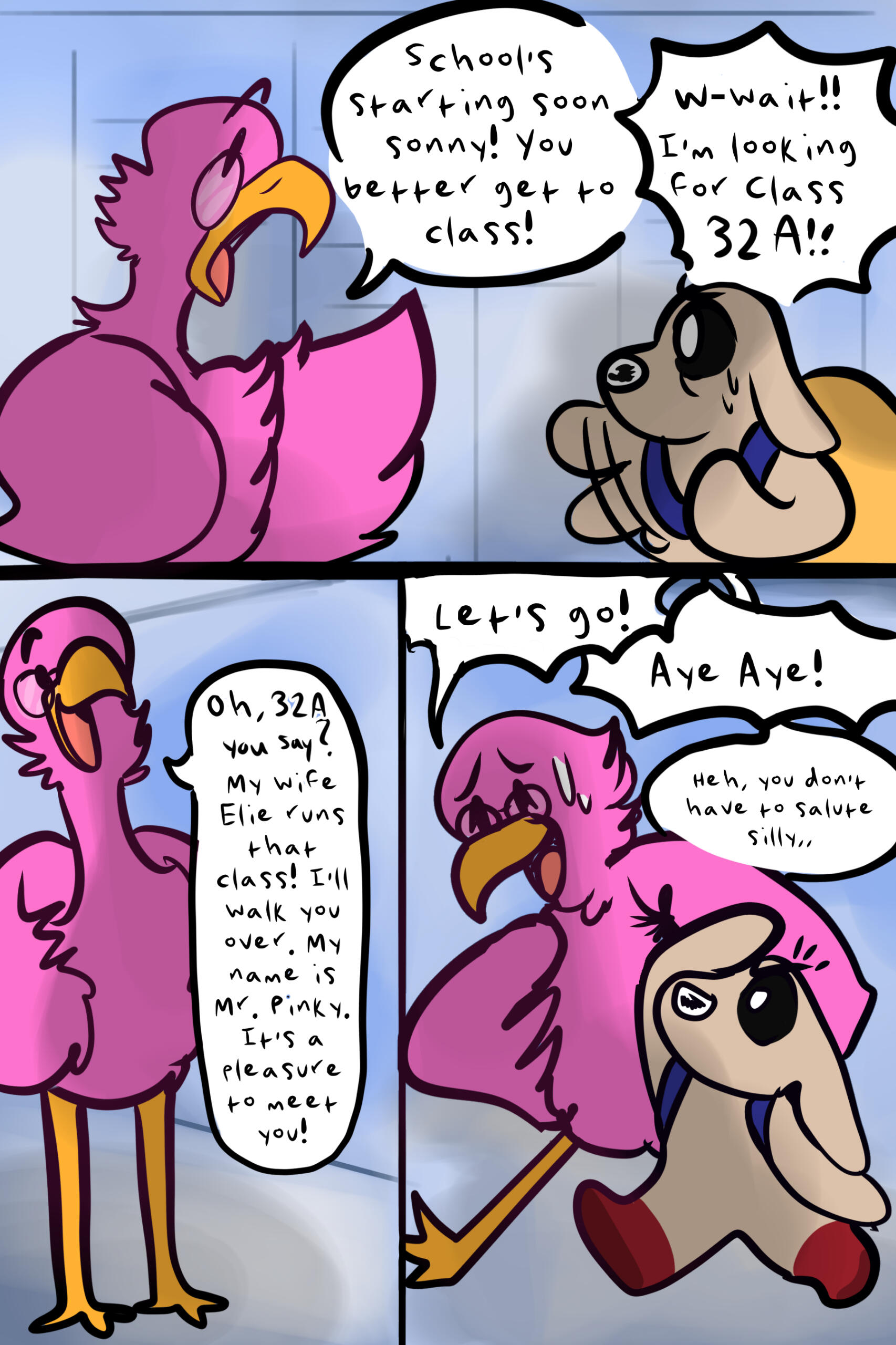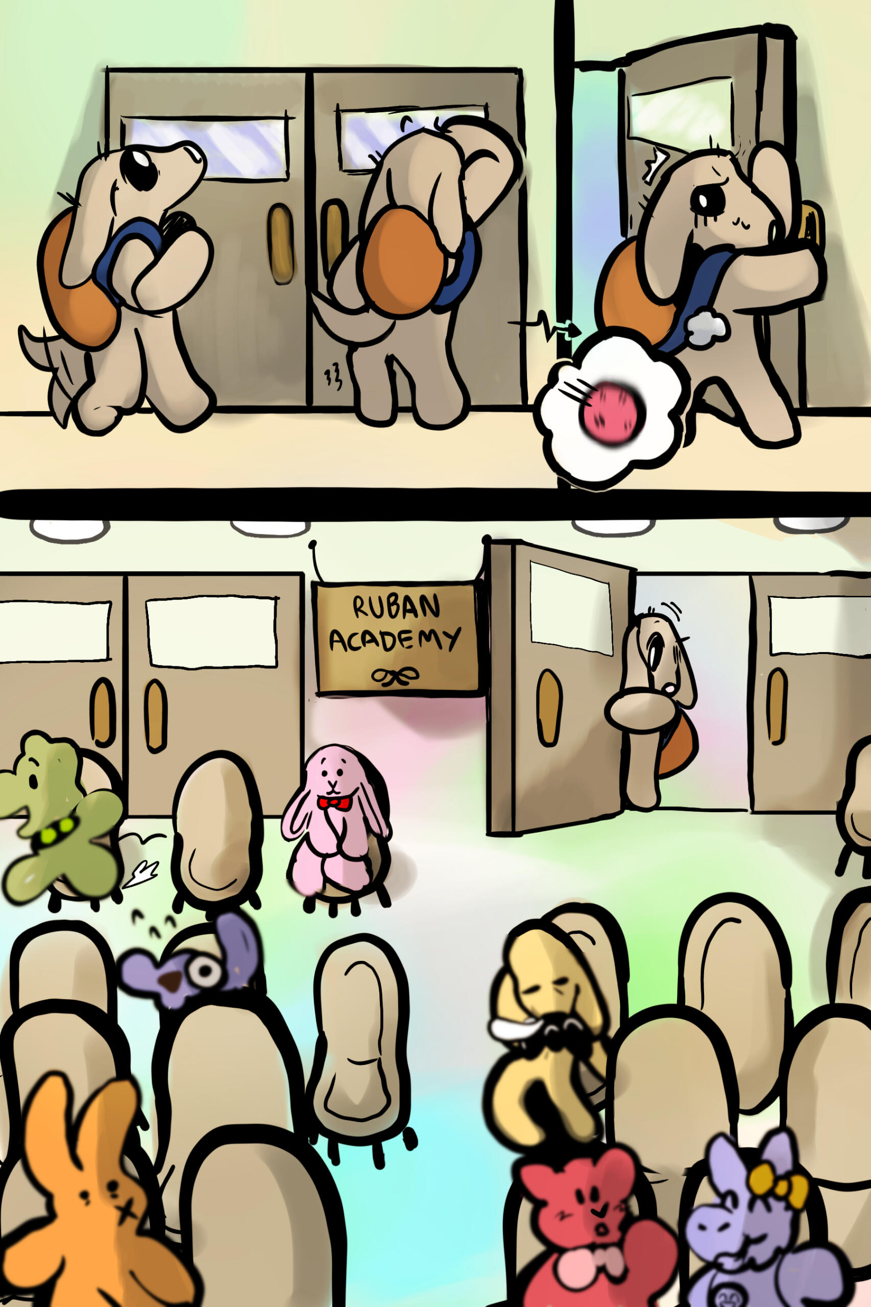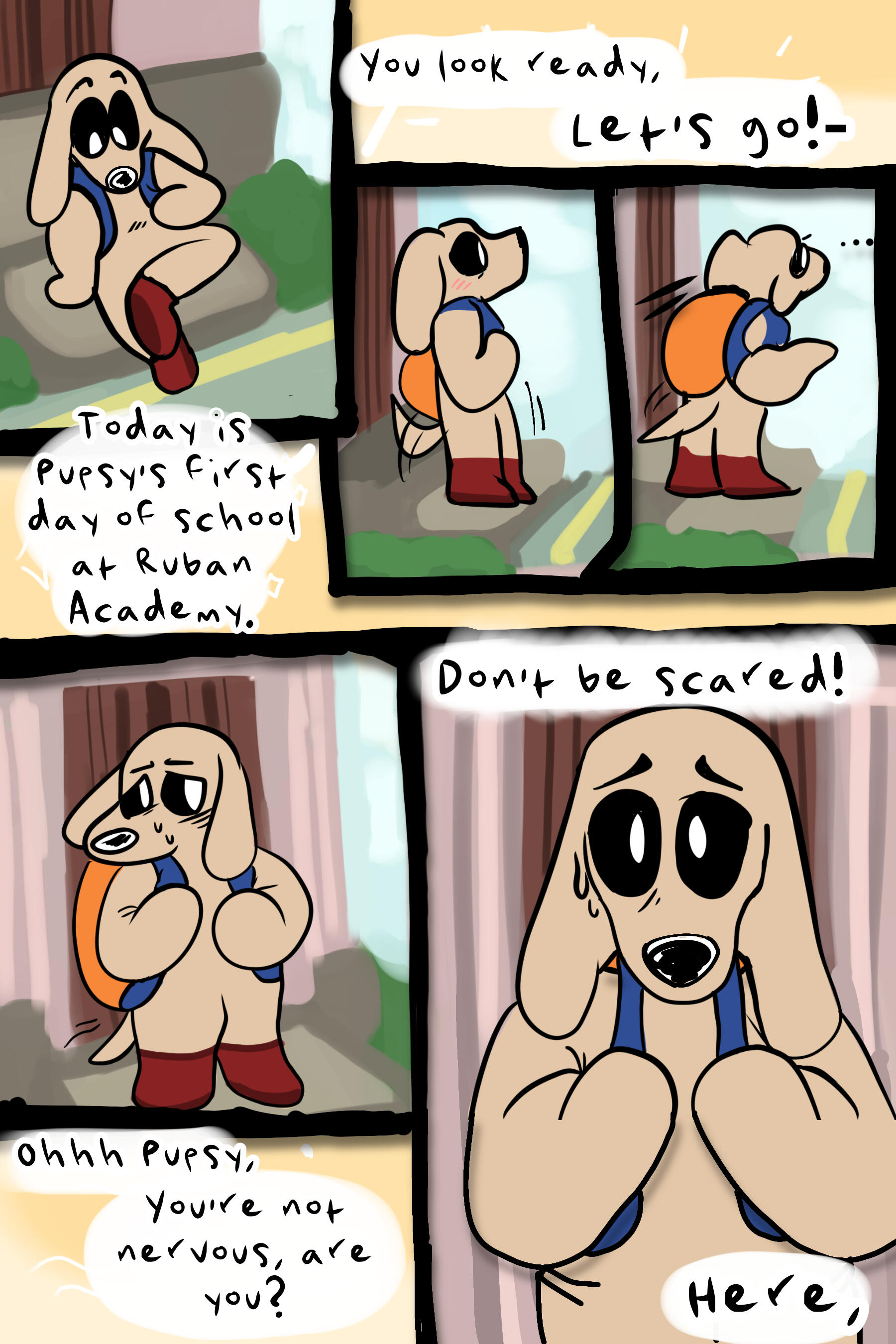 Pupsy is a comic surrounding the life of an anthropomorphic puppy by the same name. Pupsy is attending a new school for the first time. The school, regarded as Ruban Academy, is home to many students. While there are kind students, and even some more rowdier students, no student is as mysterious and as enchanting as the student Pupsy encounters, the golden retriever Goldie Brown. Our hero Pupsy is smitten and feels a flutter in his chest when meeting her after the first school day. He has never been one to make decisions on his own, nor has he had the agency to do so, but he feels his destiny is within his paws...With many new friends, occasional obstacles, as well as some bumps across his path, Pupsy will learn what love means to him. Whether in life, in his friends, in his peers and mentors...