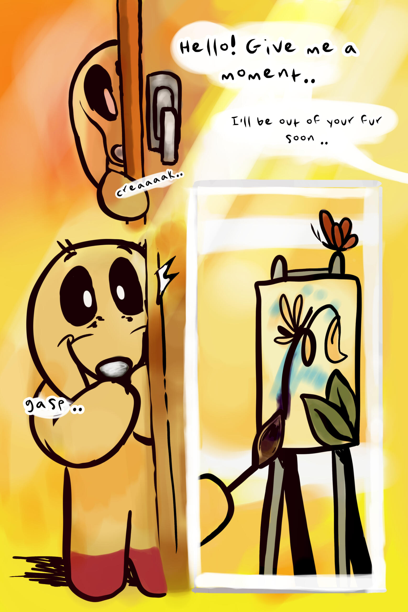 Cosmo Polgreen (he/they/she) is the author and current sole creator of Pupsy. Cosmo has been working on art as long as he can remember, starting with comics of Pokémon characters to the story of Pupsy. He is currently learning more about creative writing and to craft his own future for themselves. When they are not learning more about their craft, drawing, or writing, they are taking care of their pet goldfish Peito and spending close time with his partner.