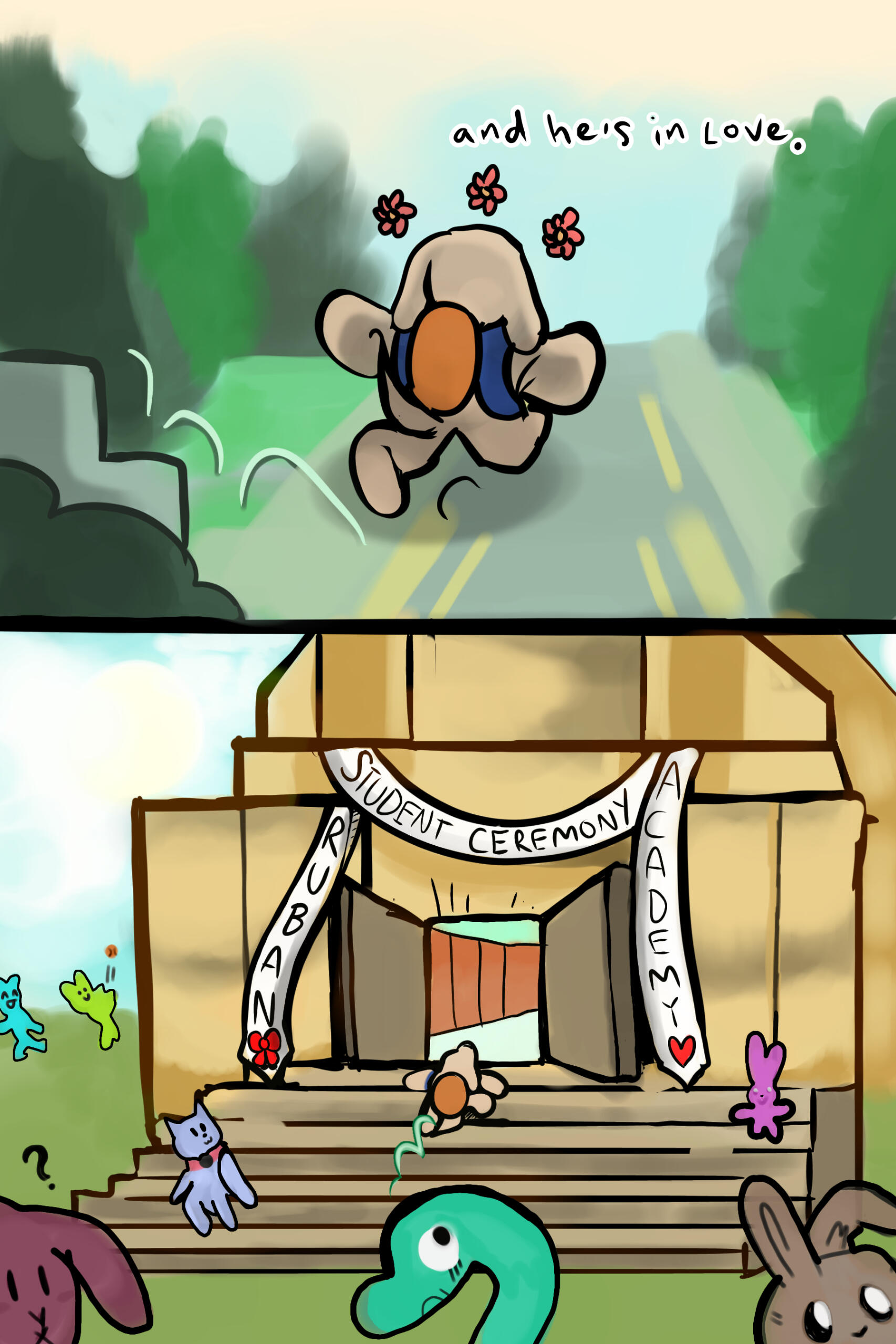 Pupsy is the newest student at Ruban Academy. He's a curious and delightful soul discovering for the world around him, and in arriving at his first day at school, he meets a girl by the named of Goldie Brown. Pupsy aims to gain her affection and win over her heart in any way possible.Pupsy can be extra scatterbrained and gushy when expressing his emotions. In any scenario, he's passionate about his interests and the people he loves. Although he's usually restricted to his comforts, he's helped through the company of his friends in class 32A, a lively group of students always aiming to have fun. In the very end though, Pupsy just wants to do and feel the things to make Goldie Brown be happy. He'll do lots to achieve whatever that must be.